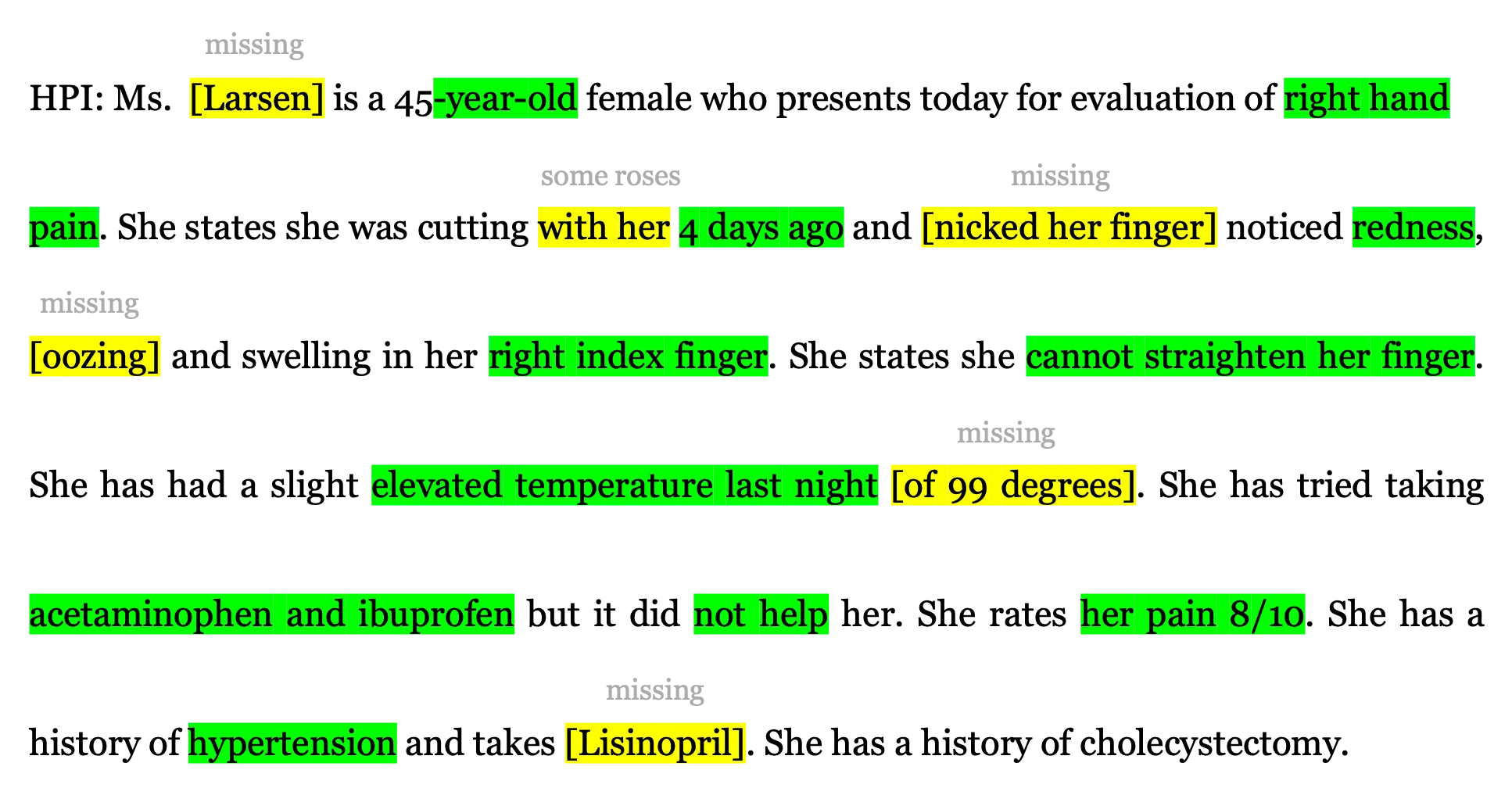 Figure 3: Excerpt of an AI-generated medical report. HPI stands for History of present illness.